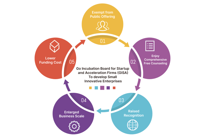Small-sized innovative companies may establish their internal control and accounting related systems, as well as carry out effective company management via the capital raising platform and public counselling mechanism on GISA. This will help the growth of small-sized companies, and they may consider making their companies public at a later stage, which may also lead to going listed on Taiwan stock market.