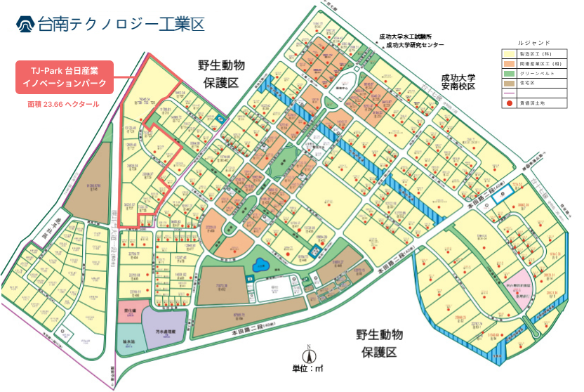 この公園は開発当時、第一次工業用地(黄色)、第二次工業用地(紫)、コミュニティ用地(茶色)、台日産業イノベーションパーク(赤線枠内)および関連公共施設、緑地帯として指定されました。土地。公園の主な土地面積は約268ヘクタール、二次土地面積は約35ヘクタール、コミュニティ土地面積は約31ヘクタール、残りの公共施設面積は約162ヘクタールです。