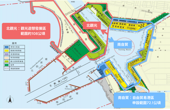 安平商港北側觀光遊憩發展區規劃遊艇碼頭區、水岸複合觀光遊憩區及海灣遊憩區共占地108公頃,已陸續引進亞果遊艇、南仁湖等企業投資,南側自由貿易港區規劃自由貿易港區及綠能倉儲物流區共占地 72.1 公頃,也有多家廠進駐,在華麗轉身的同時,正朝多元目標均衡發展。